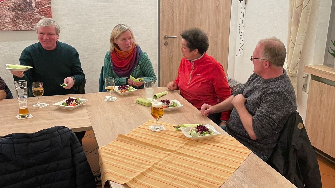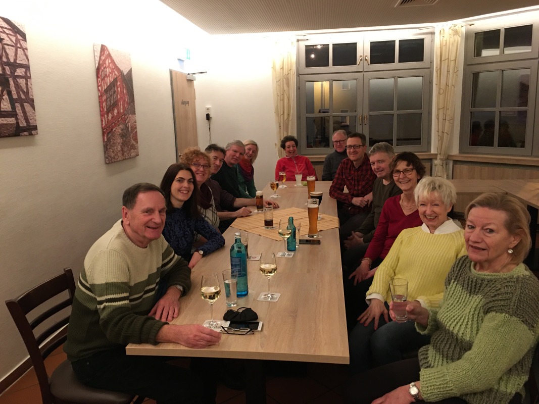 Nach einer dreistündigen Wanderung erholte sich ein Teil der Gruppe noch in gemütlicher Runde bei einem leckeren Abendessen und erfrischenden Getränken bei Taki im Restaurant des Elzer Bürgerhauses.